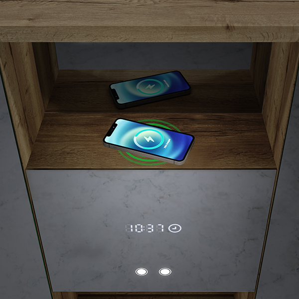 Produsele moderne au nevoie de soluții moderne. De aceea, dulăpiorul nostru a fost echipat cu o priză electrică cu 2 porturi USB încorporate suplimentar. Aveți astfel un loc convenabil pentru a conecta un uscător de păr sau pentru a vă încărca telefonul.